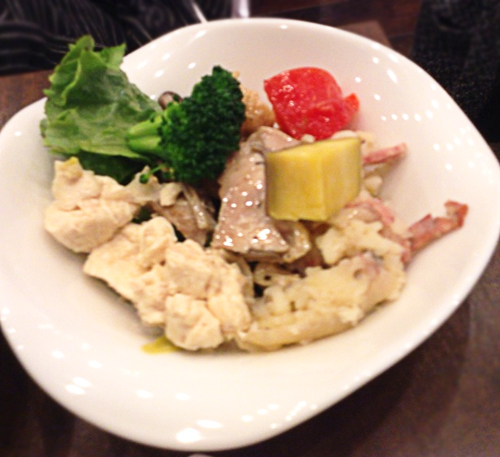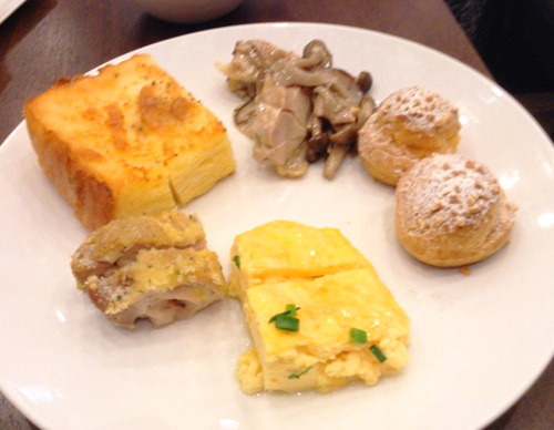 料理系はこの日は牡蠣のグラタンがとてもクリーミー。肉料理はさっぱり目、カフェの小料理っぽい味です。どうもここはジューシーさがないのでオムレツやマリネ系のが得意なようです。パスタが途中から違う具材になってました。