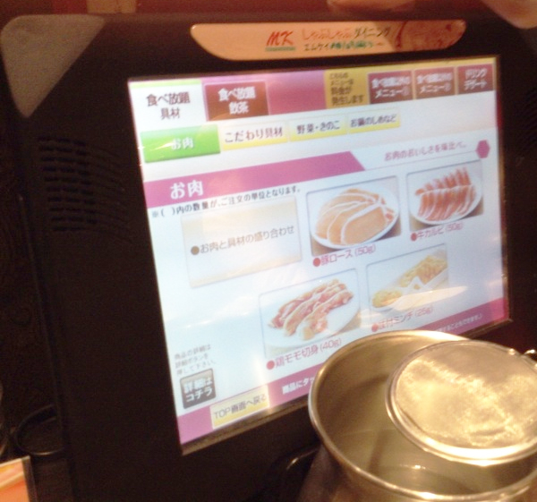 あとは自由に注文します。このお店はタッチパネルでオーダーします。