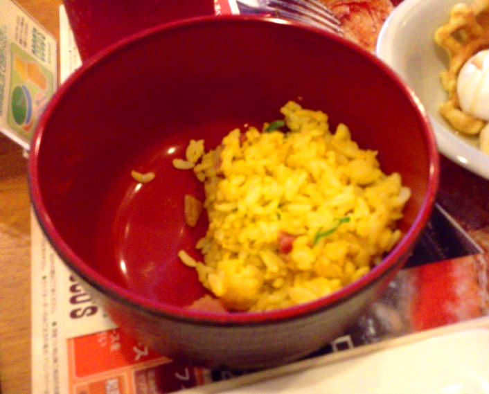 チャーハンがあったのでちょっとよそってみたんですがこれは…卵煎りご飯と呼べばいいのかな…?味が薄かったので塩足したら美味しかったです。