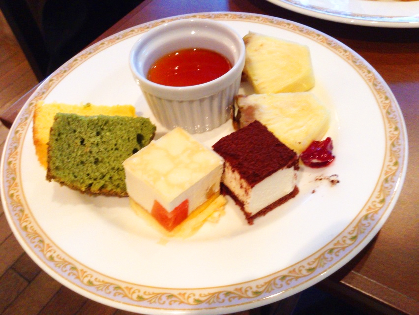 デザート類はフリーカットのケーキがだいたい2〜3種、小皿系のプリンが出たり。あとフルーツがライチとかオレンジとか色々ある感じ。