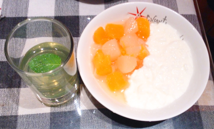 チョコフレークもここ。フルーツカクテルにヨーグルトなど。